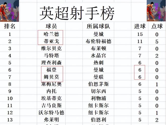 射手榜方面,哈兰德15球位列榜首,蒂亚戈11球紧随其后。维尔贝克,马特塔7球并列第3,距离榜首就有些远了。姆贝莫今天错失单刀后打空门进一球,追上福登,理查利森和塞梅尼奥,6球并列第5。